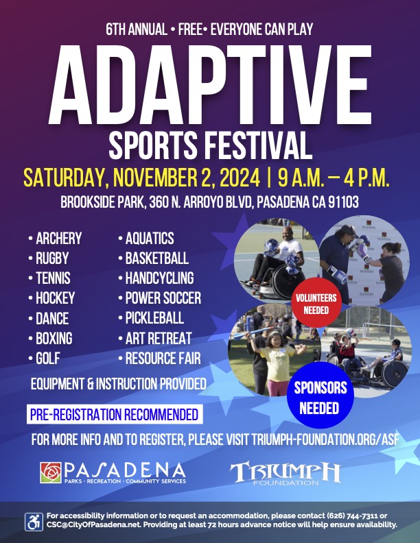 You're invited to ourย Adaptive Sports Festival at the Rose Bowl on November 2nd.