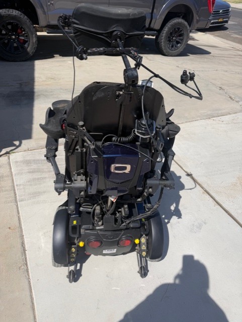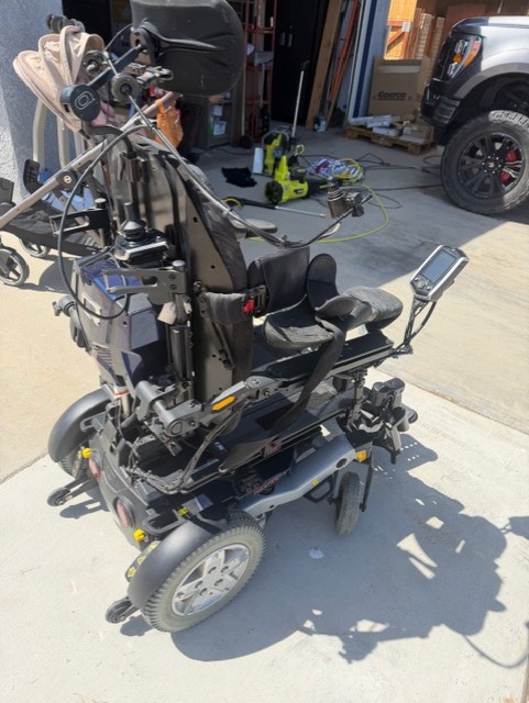 Well loved but very reliable rear wheel drive power chair. The set up is for a quadriplegic and has a chin joystick and head control. There is an assist drive joystick in back . Has all the features, recline, tilt , individual foot/leg movement control etc. Trouble uploading photos but have extensive photos and videos. Includes charger and roho air cell seat cushion! Quickest response 7607927436. Please include name, general area, and a tiny bit about the need/self when inquiring! My father passed and would love someone to find this chair useful to their needs and bless their journey to a more independent daily journey.