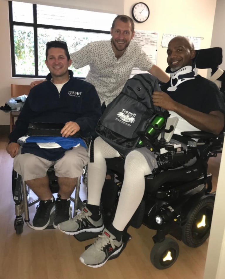 In San Diego we met Ehrren who suffered a C3-5 spinal cord injury working security at a night club. There was rowdy patron becoming a danger to the public that needed to be forcefully removed. In trying to subdue him, they both fell to the ground causing a traumatic injury to Ehrren's spinal cord.