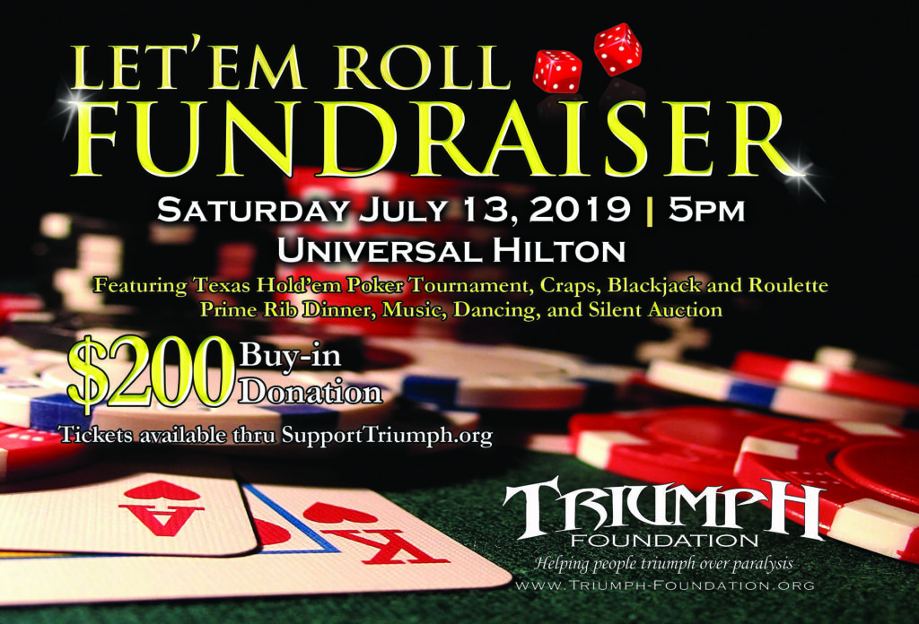 Triumph's Let'em Roll Fundraiser is on Saturday July 13, 2019 at the Universal Hilton in Universal City. The event will feature Texas Hold'em Poker Tournament, Craps, Blackjack, and Roulette. PLUS prime rib dinner, music and a silent auction.