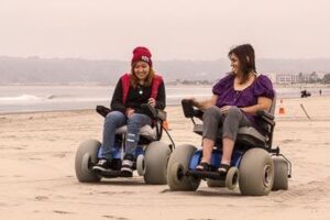 Take a free ride in a power-driven beach chair at Mission Beach