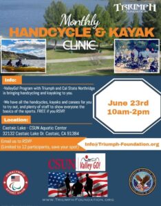 Starting on June 23rd we'll be at Castaic Lake for our ValleyGo! Handcycling & Kayaking event.